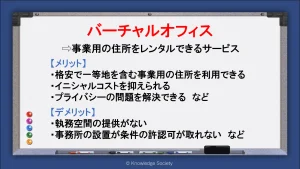 上述のレンタルオフィスやシェアオフィスは、空間をレンタルしたうえで所定の住所を使用できる制度です。