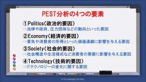 マクロ環境とは、企業が統制できない外部的な要因を指し、PEST分析では以下の4つに分類されています。