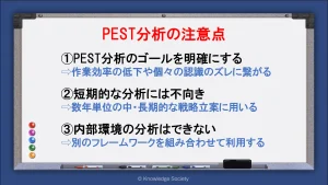 ここでは、PEST分析の注意点を3点解説するため、事前に確認をしてください。
