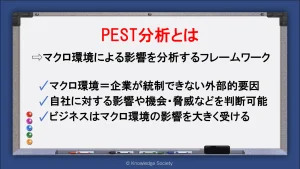 PEST分析(ペスト分析)とは、マクロ環境が自社に与える影響を分析するフレームワークです。