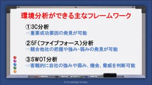 環境分析で使えるフレームワークについては、詳しく後述しています。