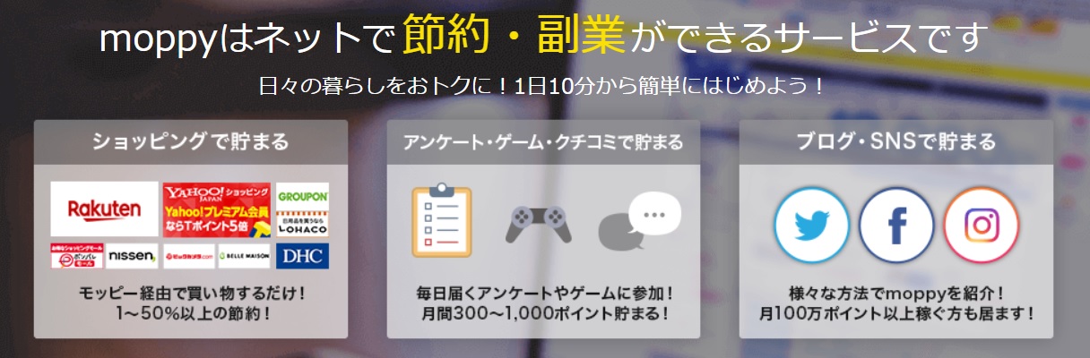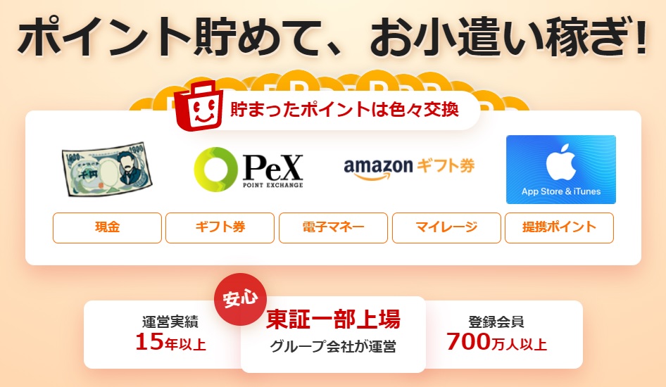 モッピーはアンケートの回答などによってポイントが溜まり、様々な特典と交換できるサービスです。