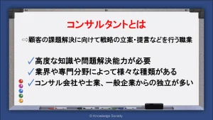 顧客は自社内で解決できない課題の解決をコンサルタントに依頼するので、業界に関する高度な知識や問題解決能力が求められます。