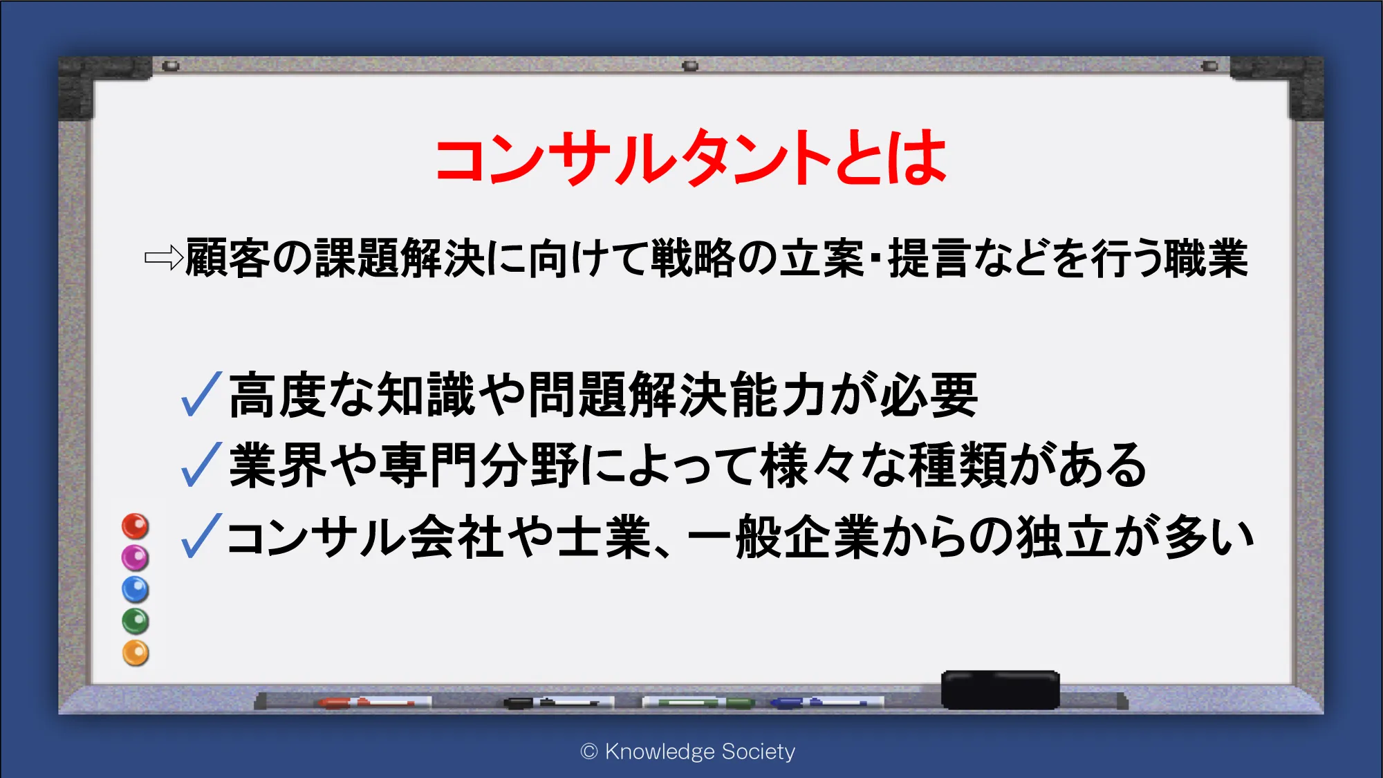 シェアオフィス・バーチャルオフィス@東京都千代田区|ナレッジソサエティ > 起業ノウハウ > コンサルタントとして起業する方法とは│メリットや成功のコツ、開業の流れを解説 > コンサルタントとは