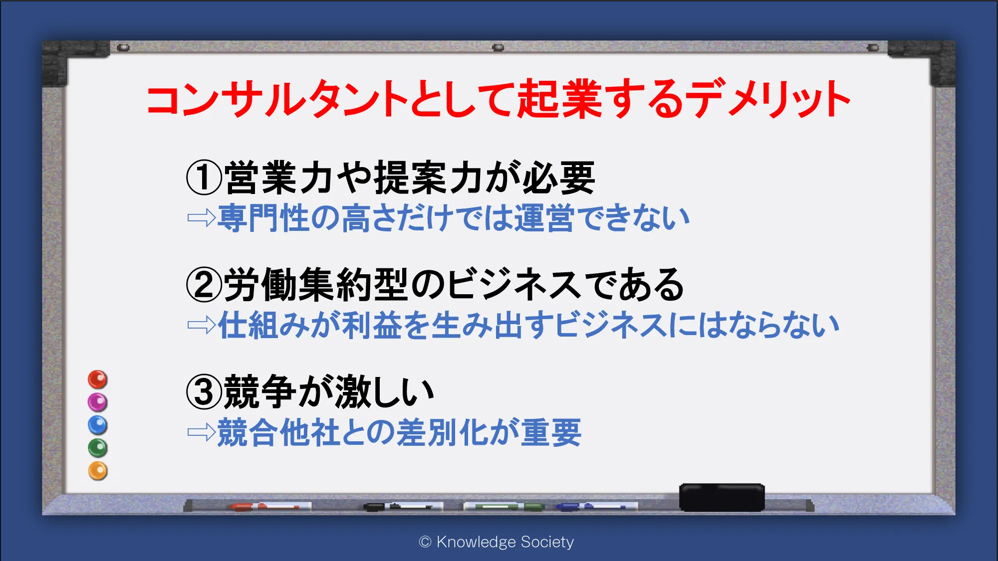 シェアオフィス・バーチャルオフィス@東京都千代田区|ナレッジソサエティ > 起業ノウハウ > コンサルタントとして起業する方法とは│メリットや成功のコツ、開業の流れを解説 > コンサルタントとして起業するデメリット