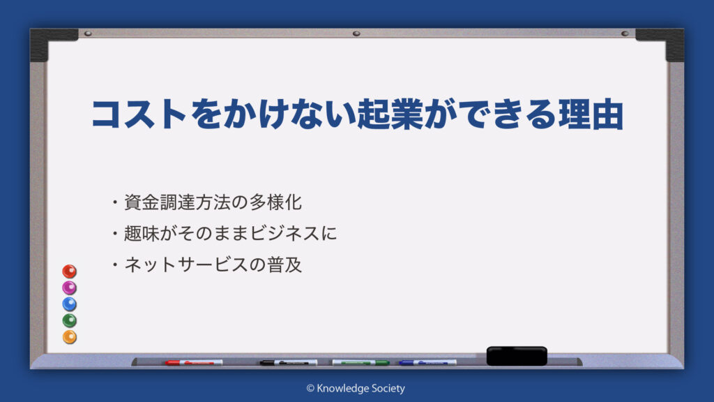 ここ最近、学生起業家が増えている背景のひとつに「コストをかけずに起業できる」という面が見受けられます。