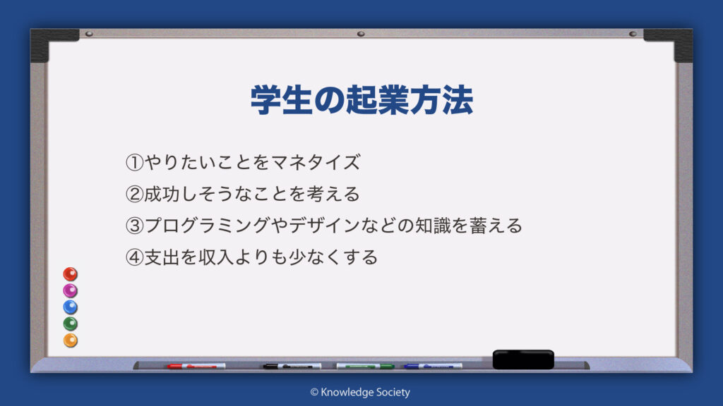 具体的な学生起業の方法ですが、いくつかポイントがあります。