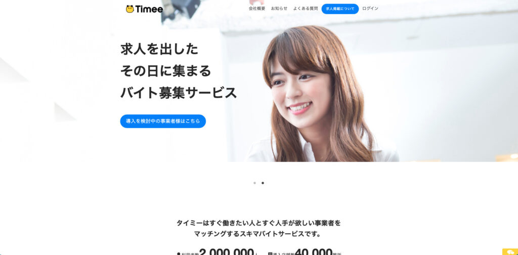 暇な時間に手軽に働いてお金を稼げる。すぐ働きたい時に人手が足りなくて困っている場所で好きなタイミングで働くことができるサービス、Timee(タイミー)。