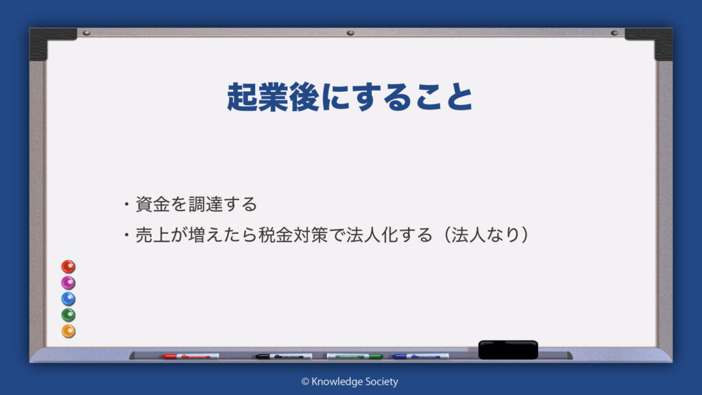 高い信用力が必要なビジネスを展開する場合は法人設立の方が適している可能性もありますが、事業運営の途中から法人成りも可能であるため、まずは個人事業としての開業を検討しましょう。