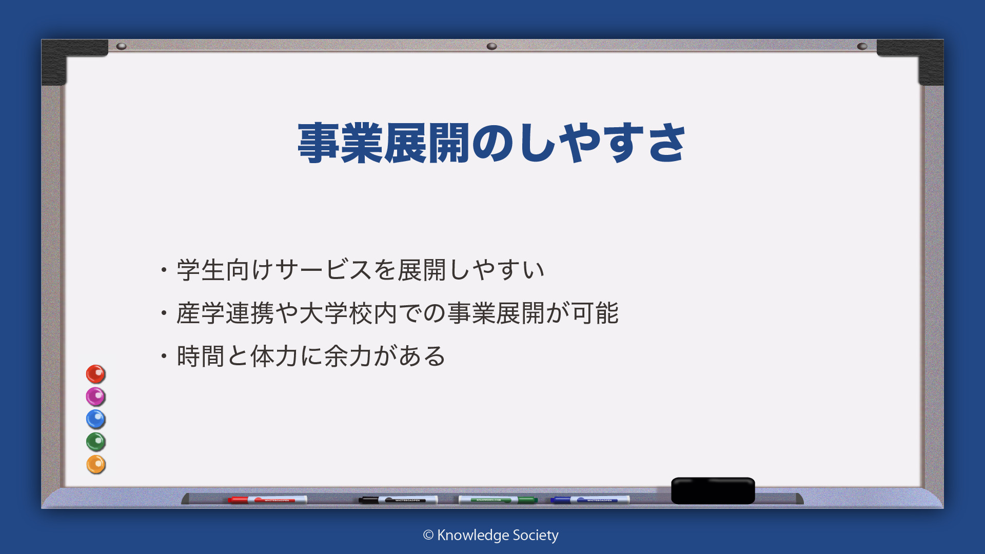 シェアオフィス・バーチャルオフィス@東京都千代田区|ナレッジソサエティ > 起業ノウハウ > , > 学生起業をするには?業種・アイデアや資金調達方法、成功例などを解説 > 学生起業がしたい人必見!方法・メリットからおすすめ分野まで解説