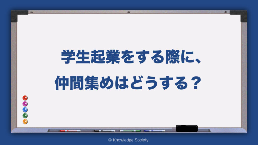 起業したいと思っている学生にとって、一番の懸念点とも言えるのが共に働く仲間集め。仲間とともに起業してみんなで成功したい!と思っている人もいるのではないでしょうか。1人ではできないようなことも複数人だったらできるのではないか、などと思っている人は多いでしょう。