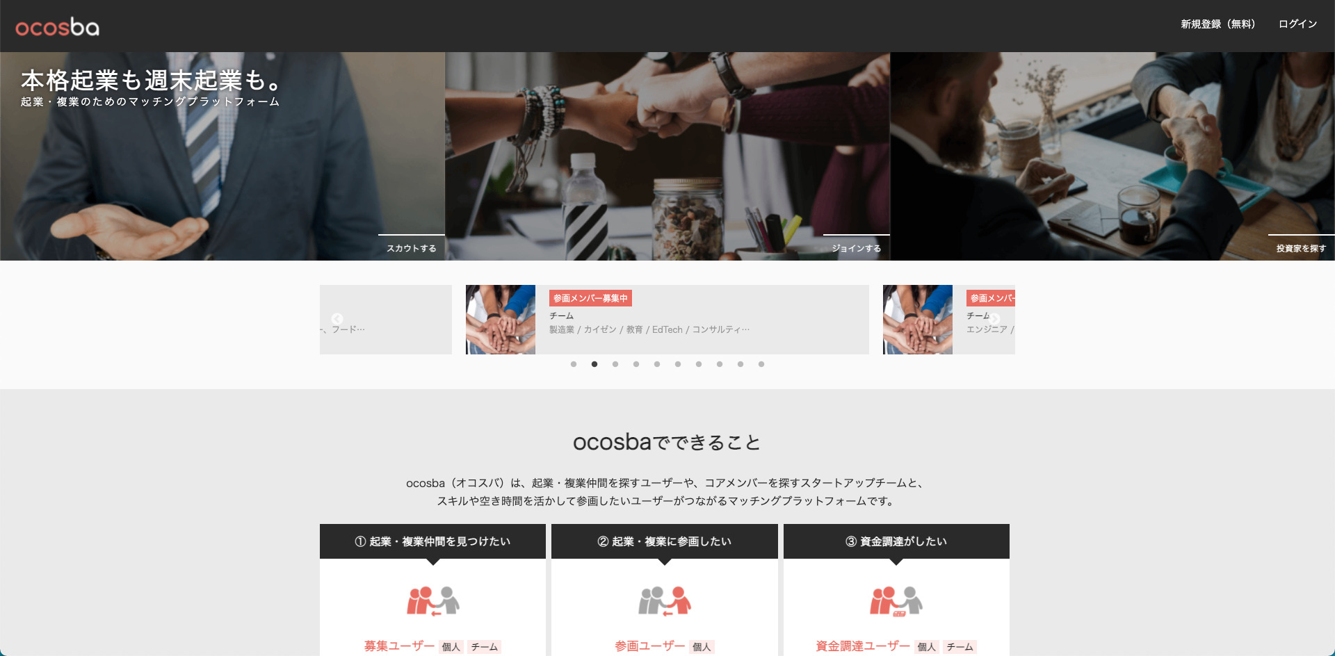 シェアオフィス・バーチャルオフィス@東京都千代田区|ナレッジソサエティ > 起業ノウハウ > 【必読!】学生起業の仲間集め方法とよくある失敗例 > ocosba説明