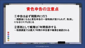 青色申告を行う上で注意するべき点がいくつかあります。これらの注意点を知らないと、青色申告に関するペナルティを受ける可能性が生じるため注意が必要です。