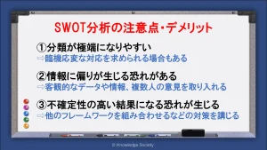 メリットが大きいSWOT分析ですが、一部デメリットや注意点が存在します。活用する際は注意点を理解したうえで、経営戦略を立案しましょう。