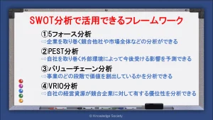 SWOT分析を進める際は、他のフレームワークを組み合わせて分析を進めることが有効です。