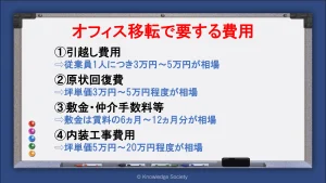 敷金や礼金、仲介手数料等もオフィス移転の大部分を占める費用です。