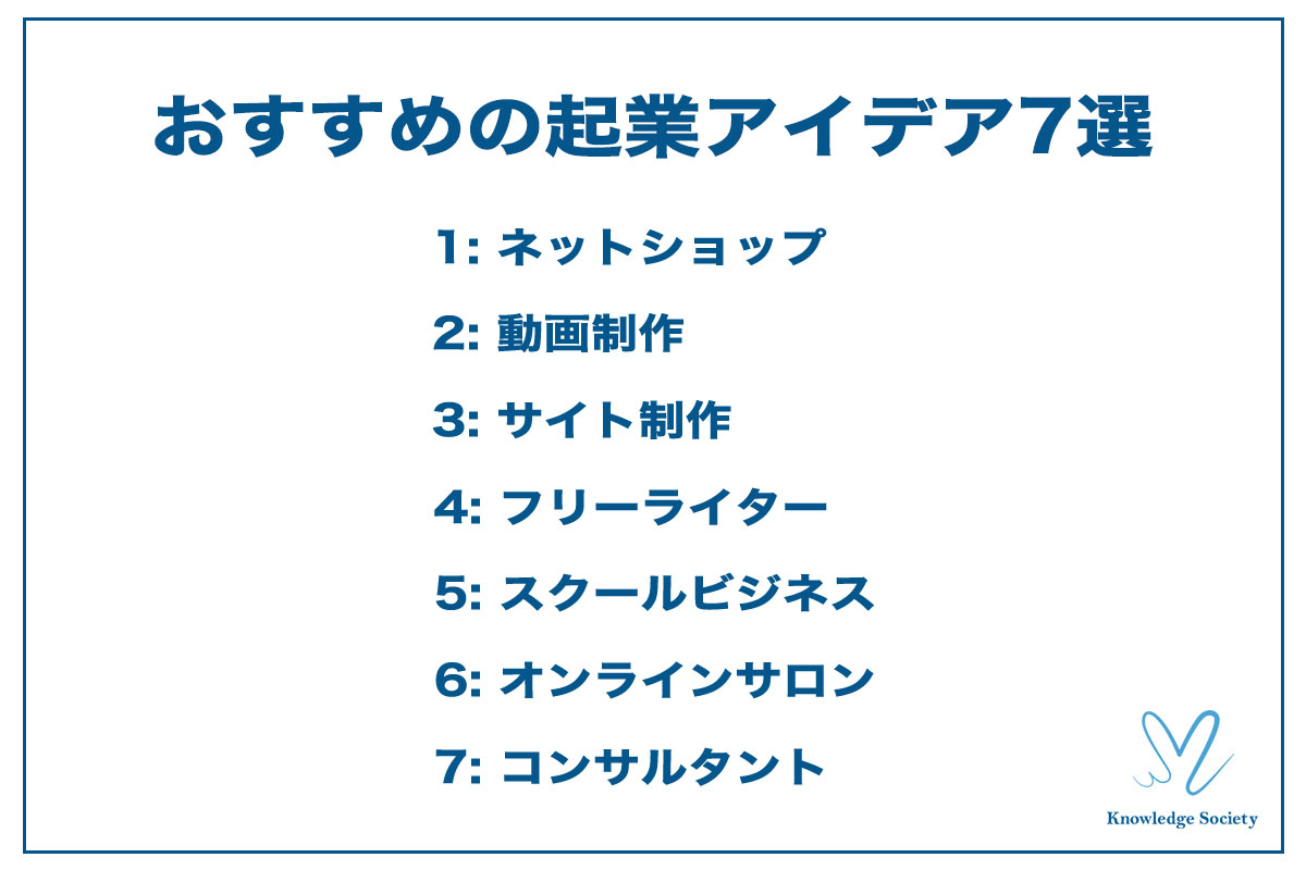 シェアオフィス・バーチャルオフィス@東京都千代田区|ナレッジソサエティ > 起業ノウハウ > > 起業したい人が起業前に実践すべきことは?起業アイデアの見つけ方も解説 > 起業アイデア7選