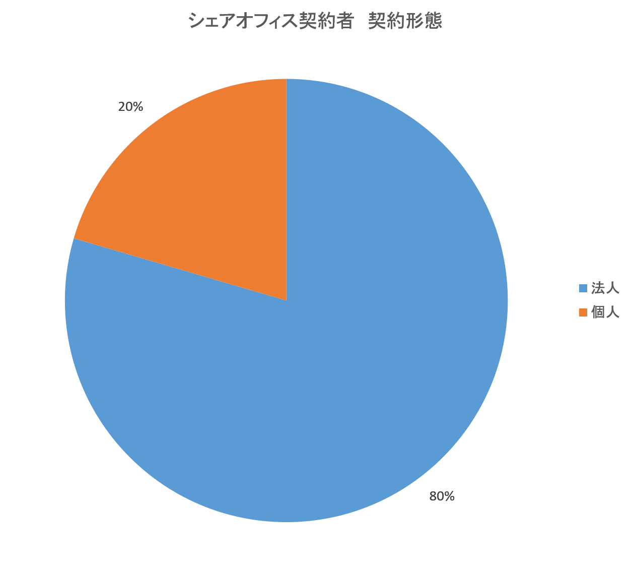 【契約形態・シェアオフィス】法人80%(101契約):個人20%(26契約)