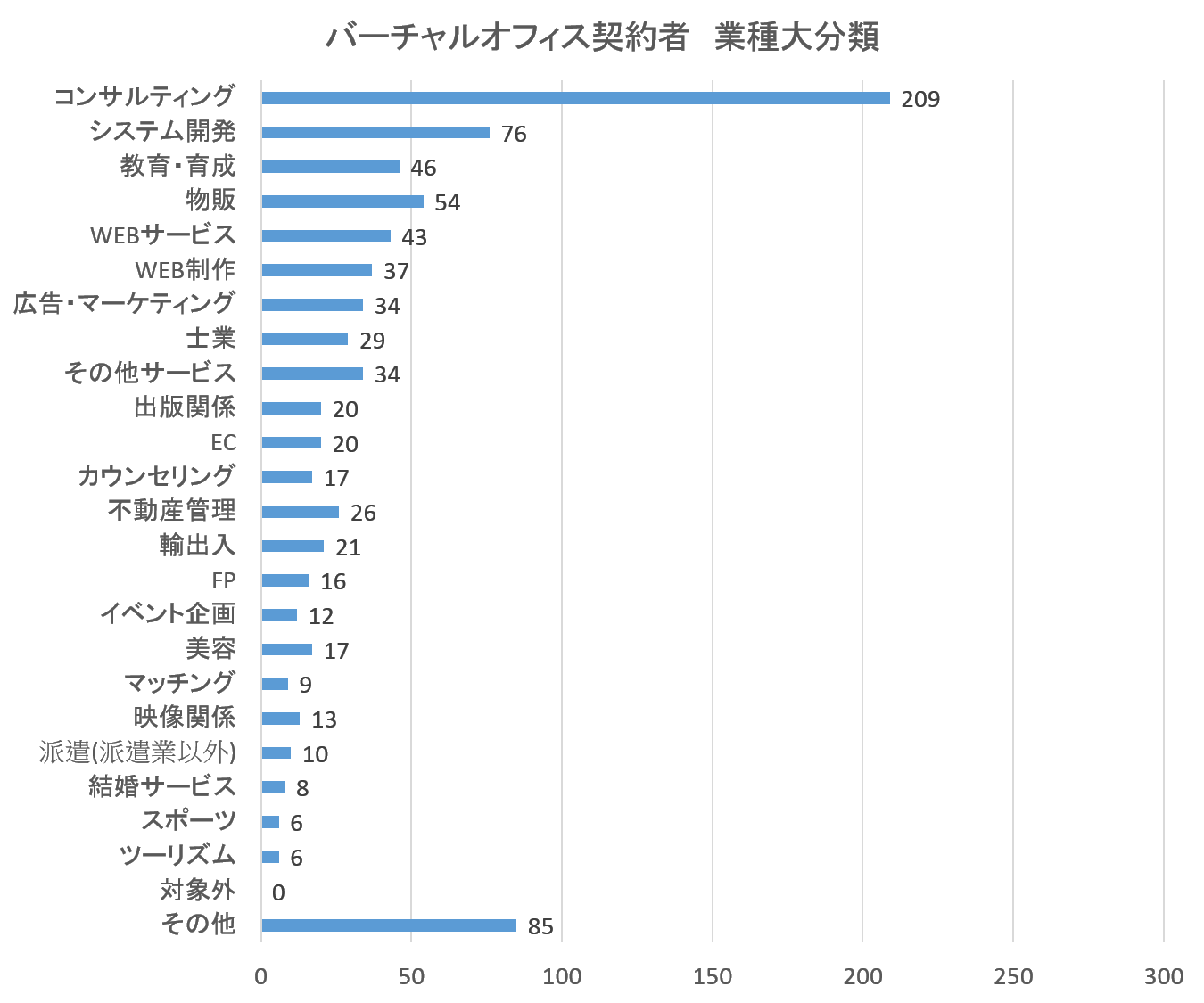 シェアオフィス・バーチャルオフィス@東京都千代田区|ナレッジソサエティ > ニュース > 【会員属性・調査報告】バーチャルオフィスの契約数が850契約を突破(合計1019契約) > 業種VM2019年2月発表