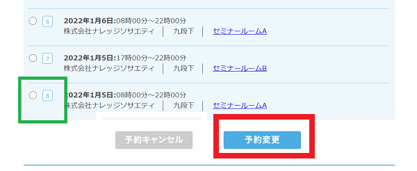日程調整を行い、赤枠の「予約変更」ボタンをクリックします。
