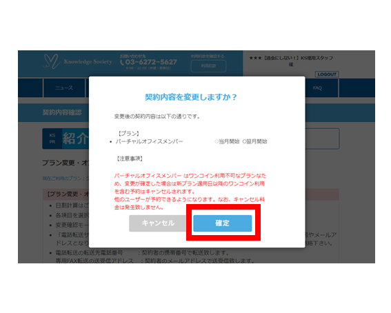 シェアオフィス・バーチャルオフィス@東京都千代田区|ナレッジソサエティ > よくあるご質問 > 変更・解約 > プランの変更方法を教えてください。 > プラン変更の方法⑦
