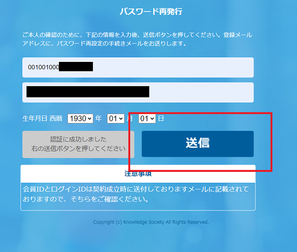 「会員ID」は契約成立時にお送りしている15桁の番号を入力します。