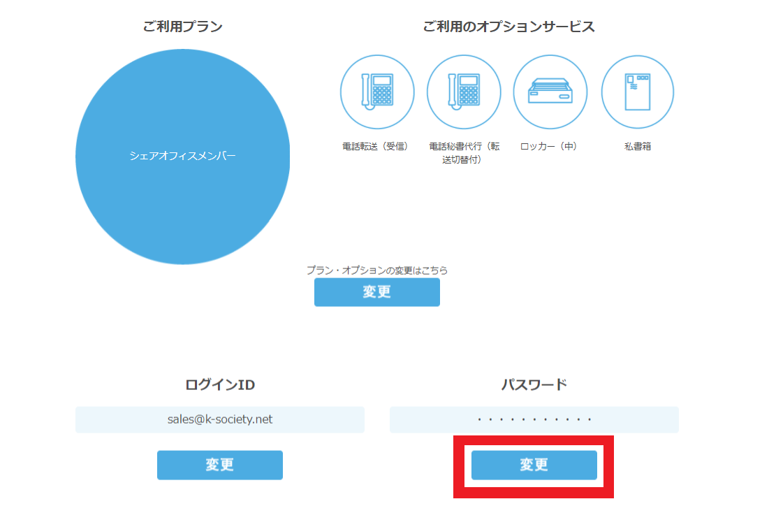 シェアオフィス・バーチャルオフィス@東京都千代田区|ナレッジソサエティ > よくあるご質問 > 変更・解約 > 会員サイト(マイページ)のパスワードを変更できますか? > 会員サイトパスワード変更