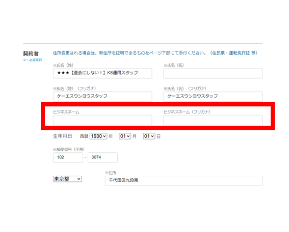 シェアオフィス・バーチャルオフィス@東京都千代田区|ナレッジソサエティ > よくあるご質問 > 変更・解約 > ビジネスネームの登録方法を教えてください。 > ビジネスネーム登録⑤
