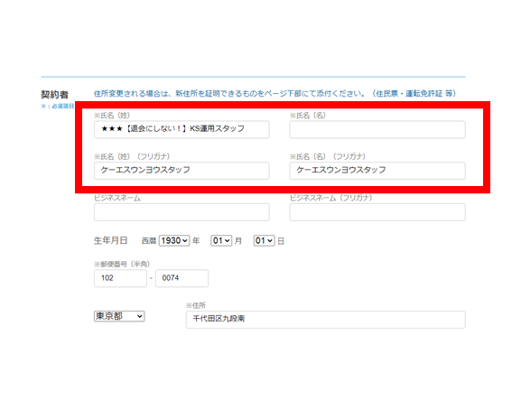 シェアオフィス・バーチャルオフィス@東京都千代田区|ナレッジソサエティ > よくあるご質問 > 変更・解約 > 名前の変更方法を教えてください。 > 名前変更⑤