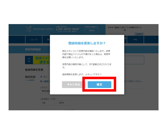 シェアオフィス・バーチャルオフィス@東京都千代田区|ナレッジソサエティ > よくあるご質問 > 変更・解約 > 名前の変更方法を教えてください。 > 名前変更⑥