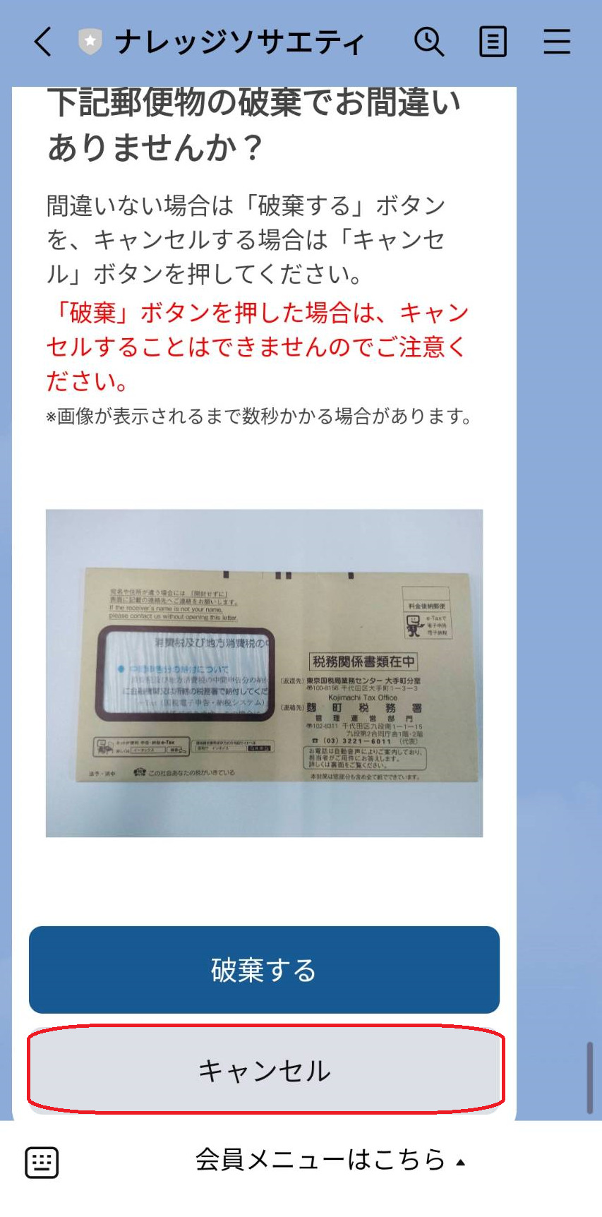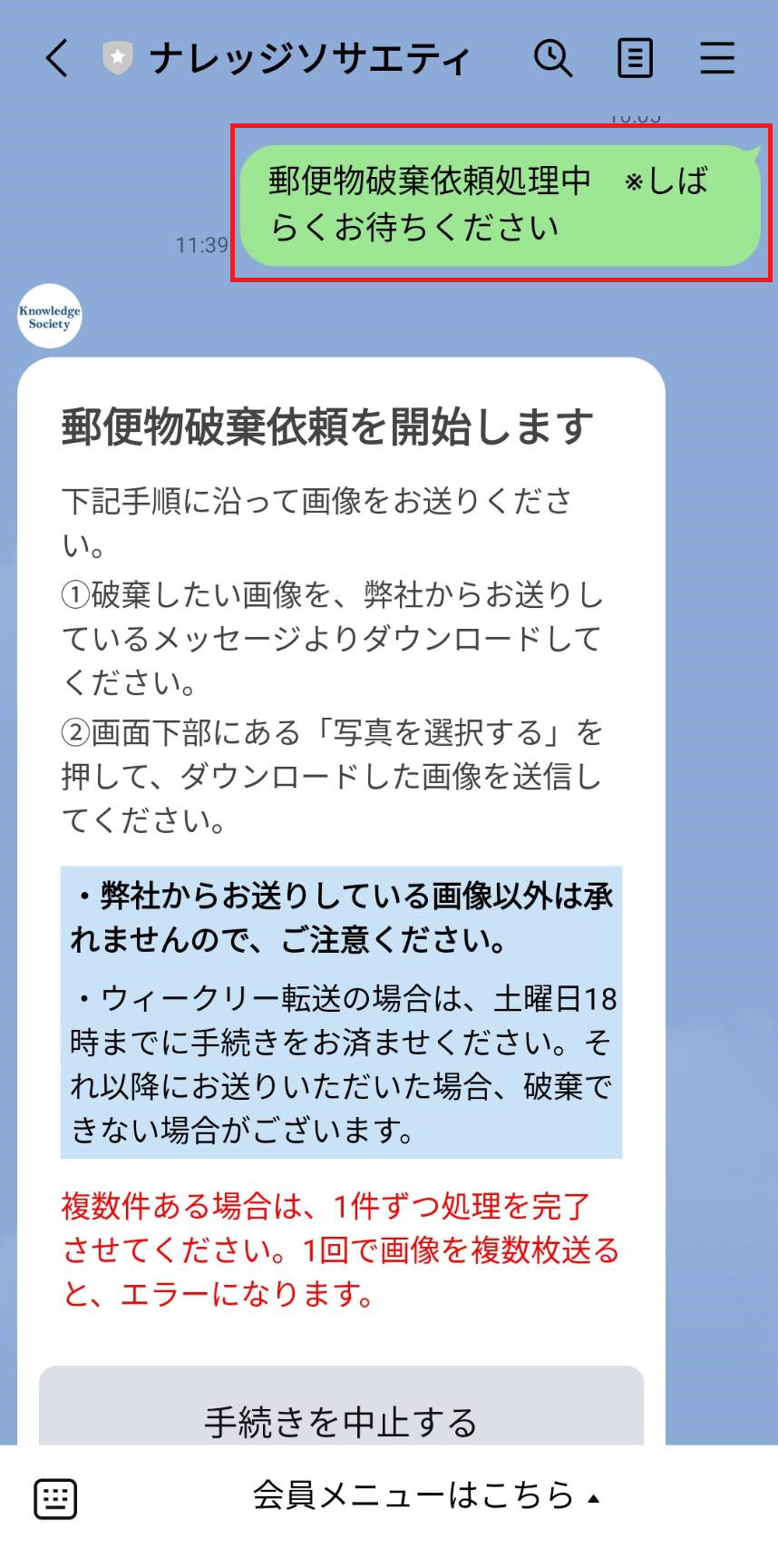 ②「郵便物破棄依頼を開始します」というメッセージが来るまで待機します