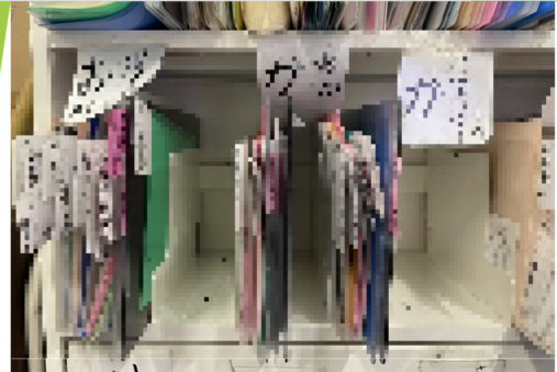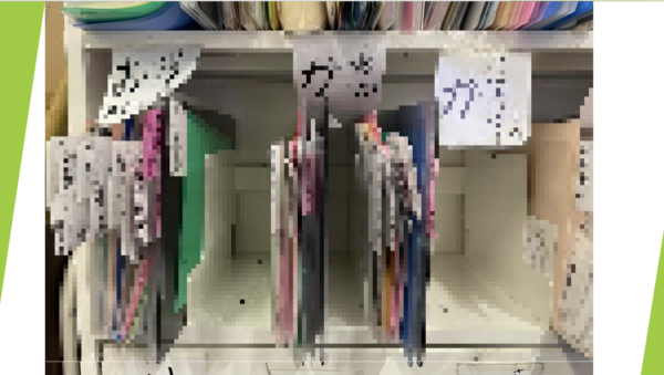 郵便棚は法人名順に「あ」行~「わ」行で並んでいますが、それぞれの区分け内でのファイルの量に差が出ています。会員数が多い「あ」や「ふ」などを中心に、2文字目でさらに細分化している棚もありますが、全体的に区分けごとの郵便ファイルの量にばらつきがあり、これも作業に時間がかかってしまう一因だと感じています。そのため、今一度どの区分けに該当する会員が多いのかを調べ、区分けごとの量がある程度均一になるように、郵便棚の区分けを変更したいと思っています。