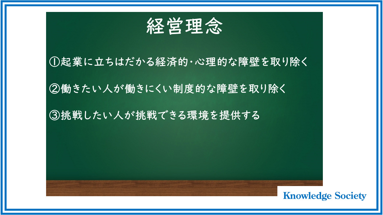 ナレッジソサエティの企業理念は「経営の力で起業家・従業員を幸せにする」というものです。
