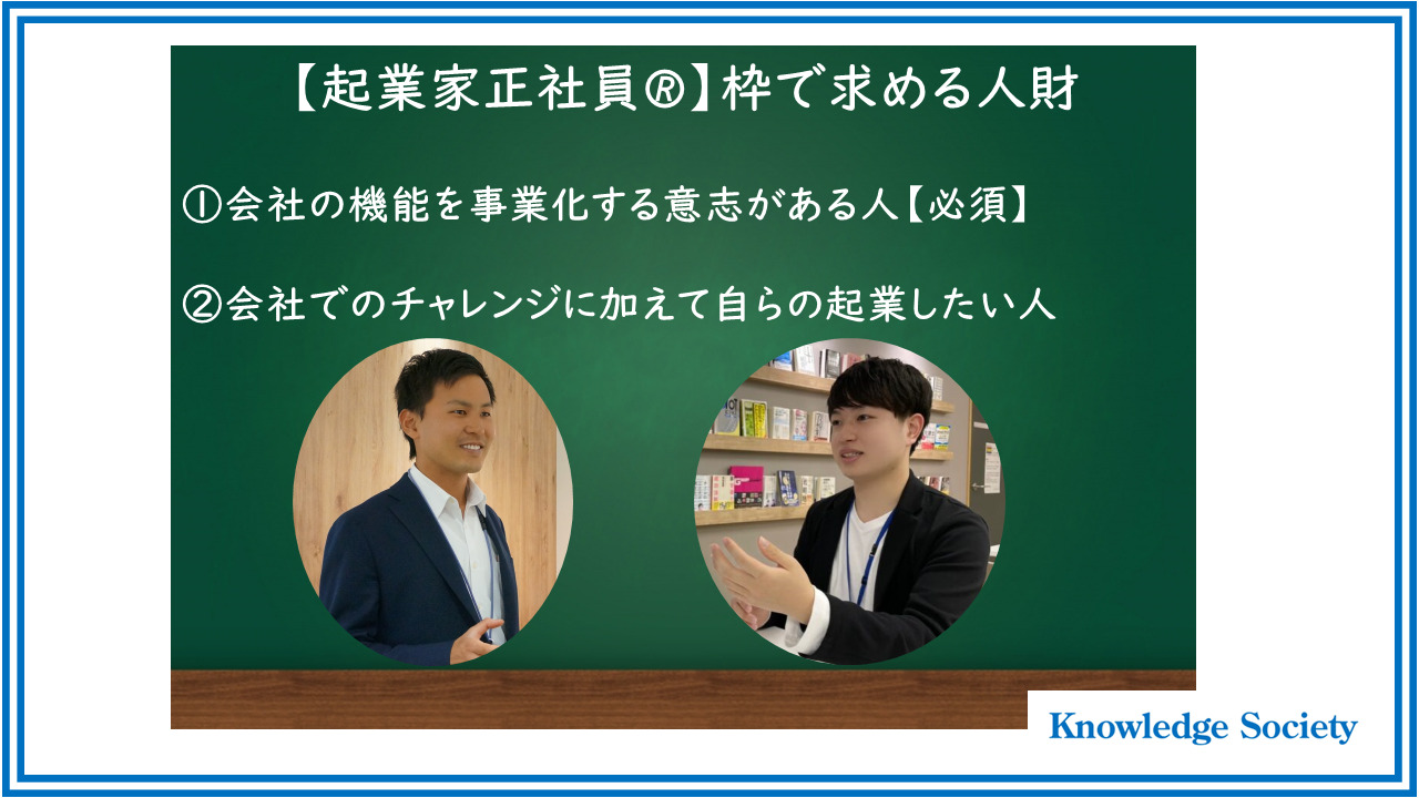 シェアオフィス・バーチャルオフィス@東京都千代田区|ナレッジソサエティ > 採用情報 > ナレッジソサエティ採用情報 > ナレッジソサエティ採用情報【随時更新】 > 【起業家正社員🄬】枠で求める人財