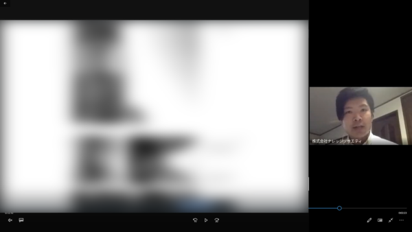 画面左に資料、右には当社スタッフの姿が映り、対面の時と似た環境で行います。