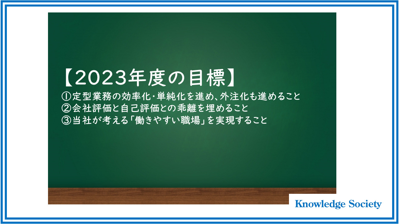 なお、目標として掲げた②職場環境の雰囲気を改善すること、③定型業務の習得速度を向上させることにもつながると考えて導入しました。
