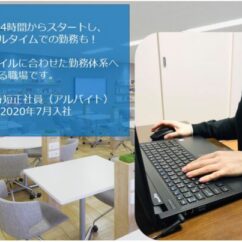 時短正社員やパート・アルバイトで入社した場合、子育てに伴うトラブルで勤務日を振り返ることにも柔軟に対応し、育児や介護に合わせて柔軟に雇用形態の変更ができるようにしたいと考えています。
