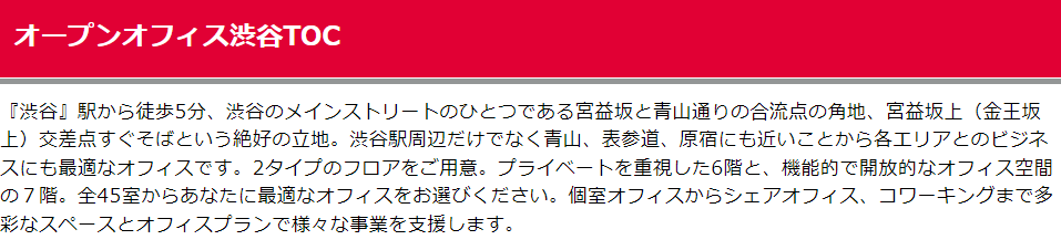 シェアオフィス・バーチャルオフィス@東京都千代田区|ナレッジソサエティ > レンタルオフィス > オープンオフィス 渋谷TOC > レンタルオフィス オープンオフィス渋谷TOC