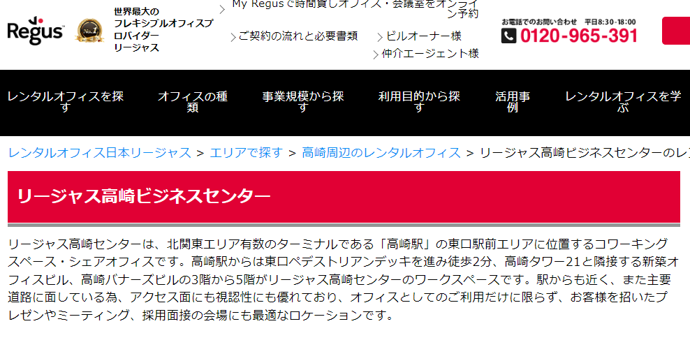 シェアオフィス・バーチャルオフィス@東京都千代田区|ナレッジソサエティ > レンタルオフィス > レンタルオフィスまとめ > 群馬のレンタルオフィス一覧【2024年版】 > レンタルオフィス リージャス 高崎