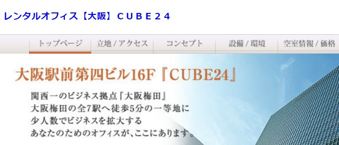 レンタルオフィス「CUBE24」が多くのお客様に支持され、選ばれている理由。 北区梅田の一等地というアクセスの良さ、顧客イメージの向上、さらにセキュリティの高い施設、オカムラ製で統一された室内など、充実の環境を。 自社所有物件によるご提供のため、他社レンタルオフィスでは考えられない低料金でご提供。 電話代行サービスをはじめとする秘書サービスも、関西のレンタルオフィスでは、初期より社外研修を導入するなど、電話来客を含め、貴社の顔として新規顧客獲得、既存顧客の満足度の向上を第一に考えてきました。(公式HPより) |