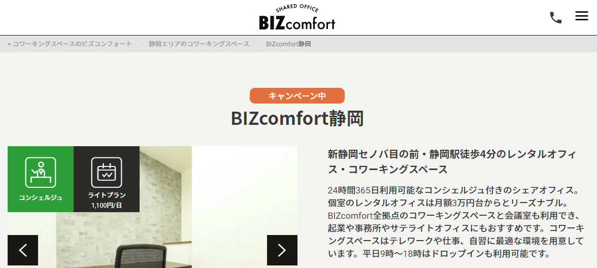 シェアオフィス・バーチャルオフィス@東京都千代田区|ナレッジソサエティ > レンタルオフィス > レンタルオフィスまとめ > 静岡のレンタルオフィス一覧【2024年版】 > レンタルオフィス BIZcomfort 静岡