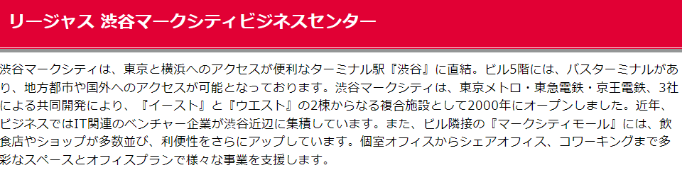 | 説明 | ANAファシリティーズが運営しているレンタルオフィスです。(公式HPより) |