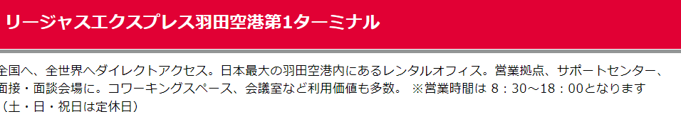 レンタルオフィス リージャス エクスプレス羽田空港第1ターミナル