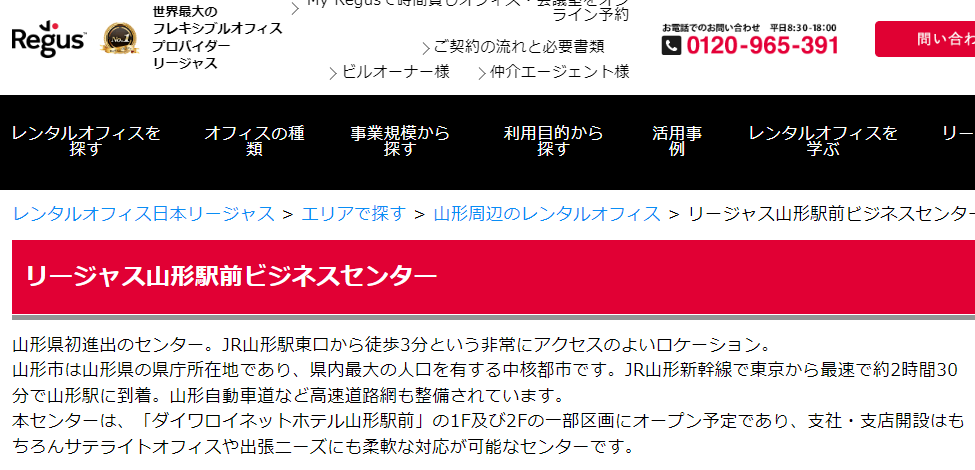 シェアオフィス・バーチャルオフィス@東京都千代田区|ナレッジソサエティ > レンタルオフィス > レンタルオフィスまとめ > 山形のレンタルオフィス一覧【2024年版】 > レンタルオフィス リージャス 山形駅前
