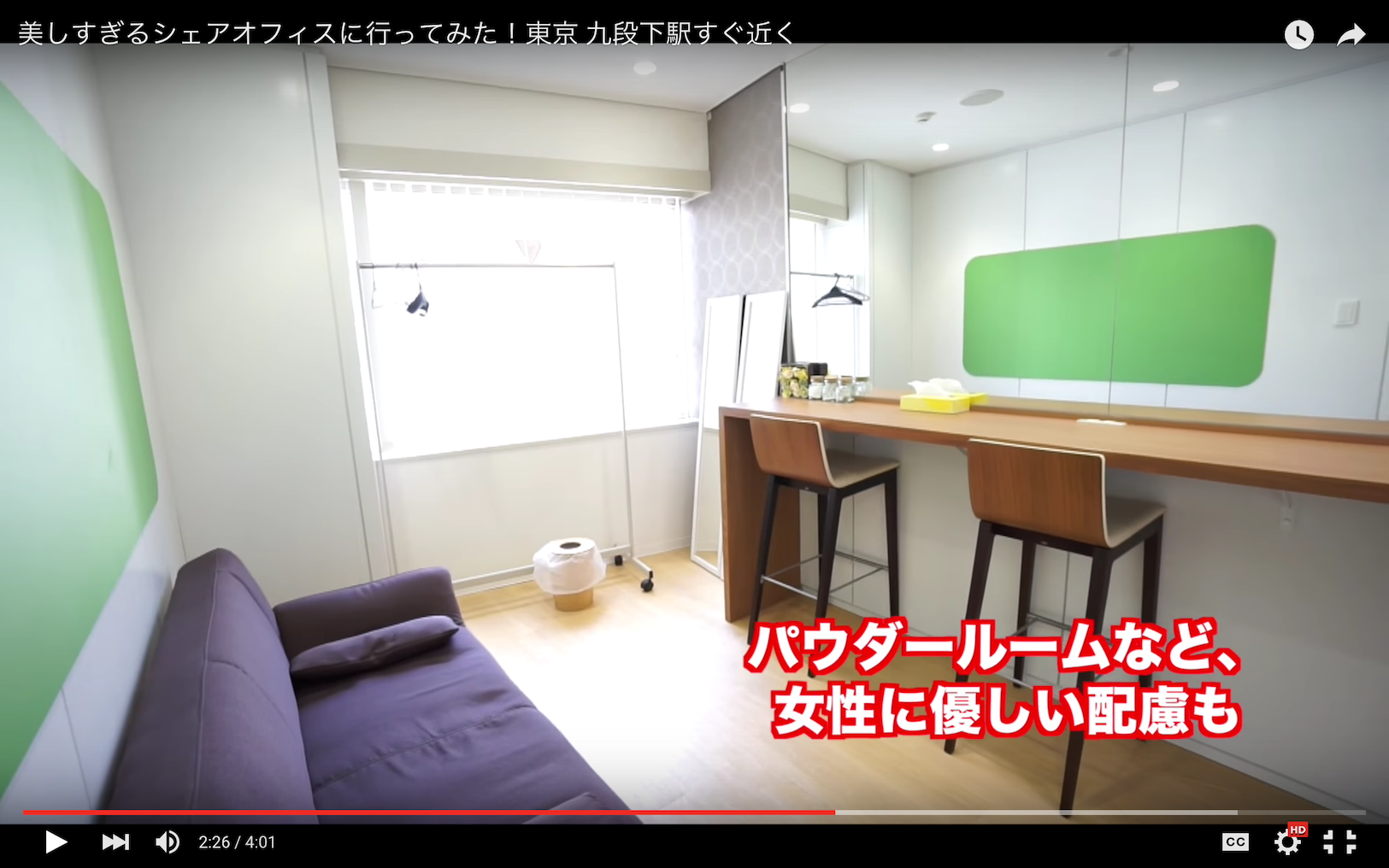 シェアオフィス・バーチャルオフィス@東京都千代田区|ナレッジソサエティ > シェアオフィス > > 美しすぎるシェアオフィスに行ってみた!東京 九段下駅すぐ近く! > 女性に嬉しいパウダールーム