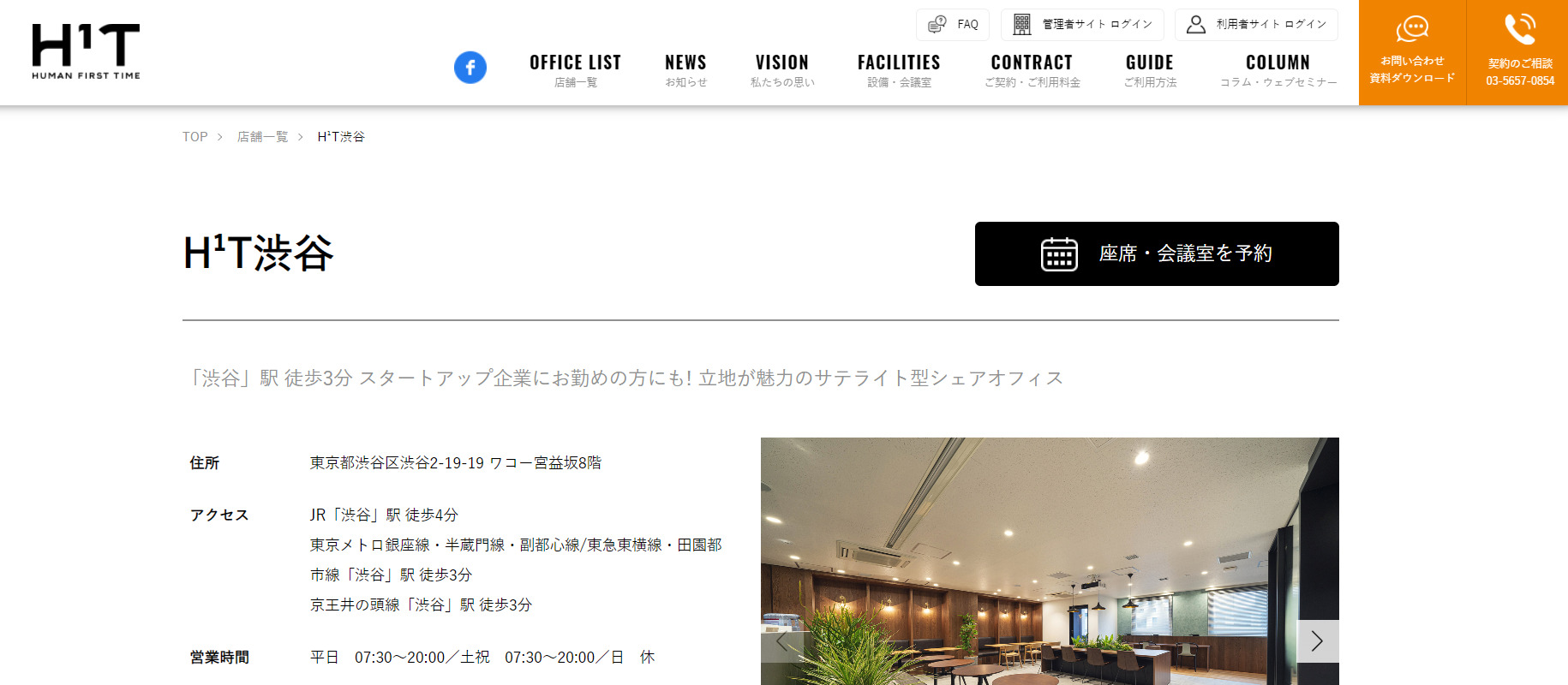 H¹T(エイチワンティー)は、野村不動産が展開するサテライト型シェアオフィスです。 働く人の時間の大切さを考え、利便性が良く、快適な第二のオフィスといえる場を提供します。オフィスに縛られない多様なワークスタイルを実現するために、多拠点化を目指し、展開してまいります。(公式HPより) 渋谷駅から徒歩4分と好立地ですので、不便さを感じません。 |
