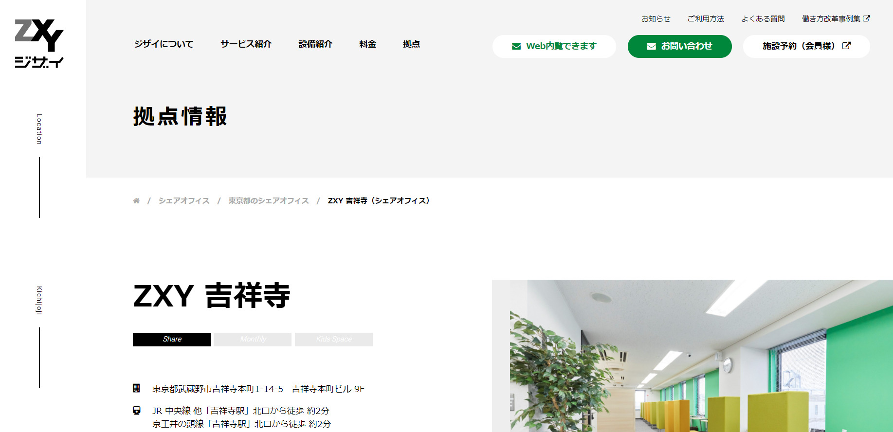 ZXY吉祥寺のある吉祥寺本町ビル(武蔵野市吉祥寺本町1-14-5)は、JR吉祥寺駅から徒歩1分。中央口を出てまっすぐ進むと見えてくるJTBトラベルの赤い看板が目印です。 都心への行きやすさと住環境の良さから住みたい街ランキングでは常に上位にランクインしている吉祥寺。 ZXY吉祥寺は、時短勤務者や遠距離通勤者のためのサテライトオフィスとしても使っていただけるように、モバイルワークビジネスに必要な設備をすべてご用意して皆様をお待ちしております。 【ブース席】個室ですので覗き見される心配がなく集中して作業できます。 その他、セキュリティゲートや安全性の高いインターネット環境など、情報保護の面でも万全の体制を整えています。(公式HPより) 吉祥寺駅から徒歩1分と好立地で、利便性が高いです。 |