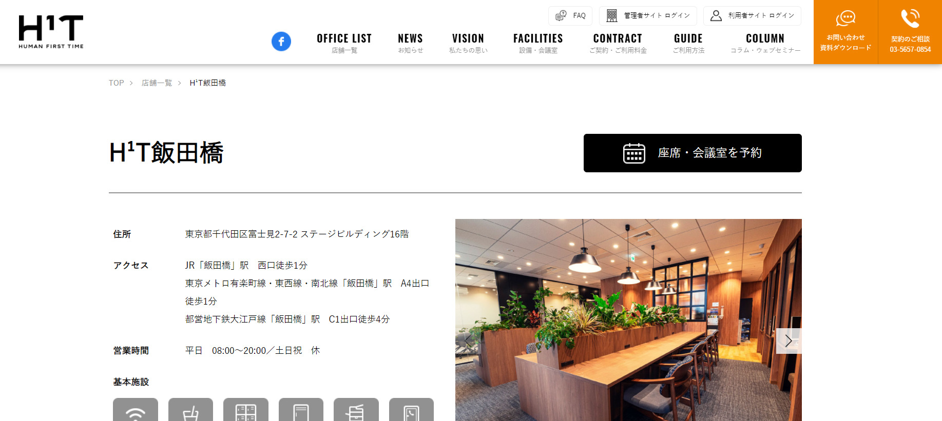 H¹T(エイチワンティー)は、野村不動産が展開するサテライト型シェアオフィスです。 働く人の時間の大切さを考え、利便性が良く、快適な第二のオフィスといえる場を提供します。オフィスに縛られない多様なワークスタイルを実現するために、多拠点化を目指し展開してまいります。(公式HPより) 飯田橋駅から徒歩1分とアクセスが良いのでおすすめです。 |