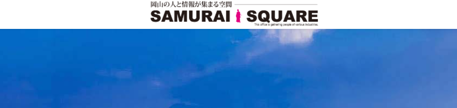 岡山駅の東口から徒歩3分の場所にあるコワーキングスペース、サムライスクエア。 オフィス、ミーティングルーム、セミナー会場をご用意しており、月額制の定期利用やドロップインでの短期利用など、一人ひとりのビジネススタイルに合わせたご利用が可能です。(公式HPより) |
