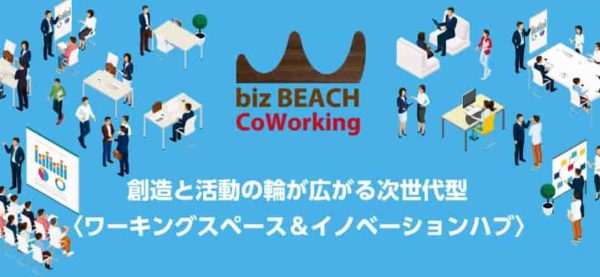 「biz BEACH coworking」は、新しいカタチのコワーキングサロンです。 ワーキングスペースとしての役割だけでなく、イノベーションハブ機能を持つ次世代型スペースとして、企業家・経営者・これから起業される方をサポートします。 新しい出会いの場をご提供し、みなさまのアイディアを育み、実現する場所です。(公式HPより) |